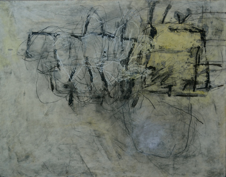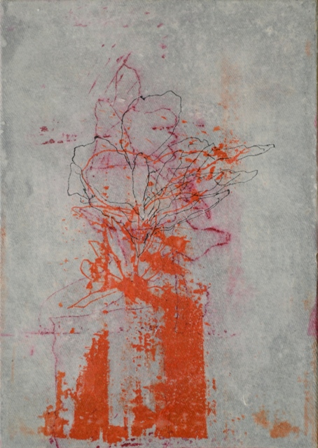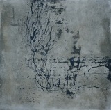 「水の中の花」 2012 227×158o パネル、綿布、和紙、アクリル、WAX、岩絵の具、銅版インク