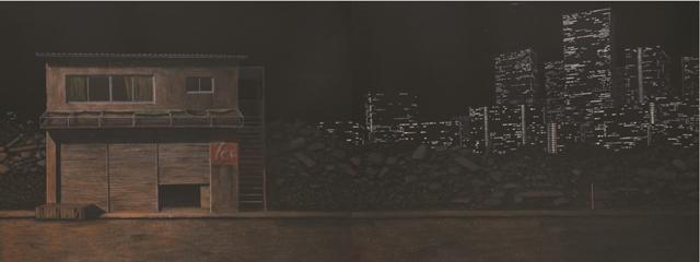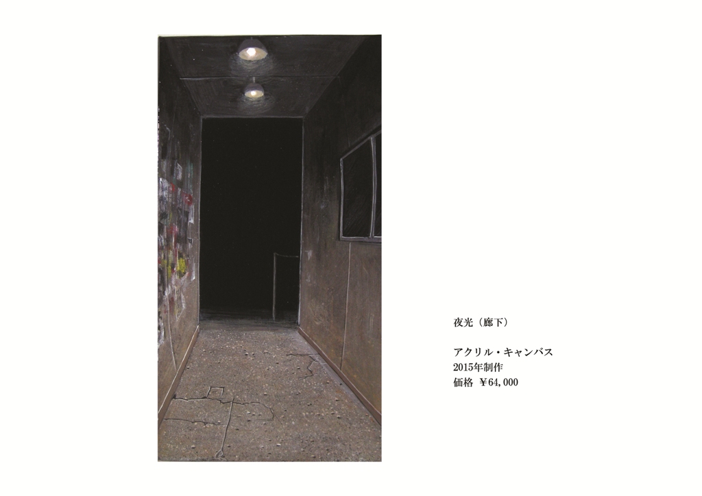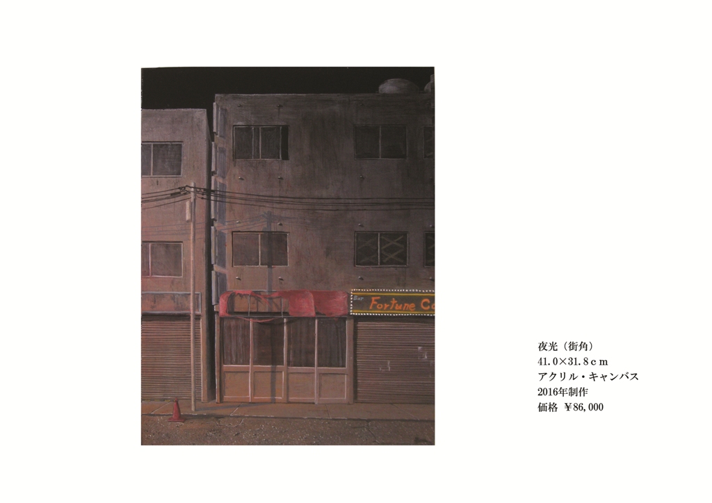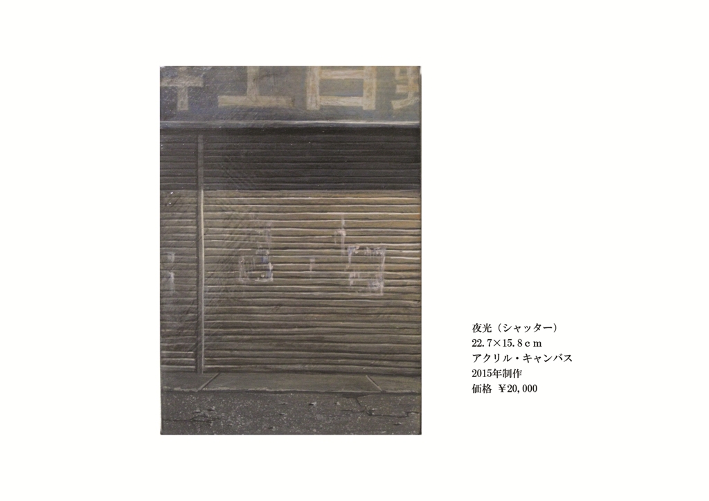 ■コンセプト 私は、社会の世相を表した芸術表現のひとつに都市風景画があると考えている。かつて、19世紀ヨーロッパでは印象派の画家たちが近代化するパリの様子を描き、明治期の日本においては高橋由一が近代化する東北の都市の姿を、15年戦争期の1940年代においては松本俊介が戦時中の東京の都市風景を描いた。それぞれが、その時代の記録であり、同時に作家たちの心象や現実を表している。 私自身も都市をテーマに描いているが、とりわけ、シャッター街や廃屋などの寂れていく地方都市の現状を多く描いてきた。そこには、かつて人間が生活していた営みの痕跡を見る事ができ、私はそこから、現代に生きる人達が失っていったなにか大切なモノを感じる。多くの都市風景画がそうであったように、私は自身の描く都市風景画に私の生きた社会の現実、そして、その社会の中で生きる私の心象を表現したいと考えている。 今回の個展では、私の新たなるモチーフである都会を題材とした作品の展示を予定している。とりわけ、夜を描いた作品が多いが、都会の中にも地方のシャッター街のように忘れられ、失われていくモノがあるのではないかと考え制作を行った。私たちが生きていく都市の中で失われていったモノはいったい何なのか・・・私は絵画制作を通して探していきたい。 吉井宏平 |