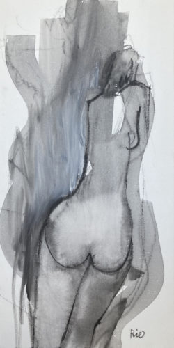 その感性は、2013年に出会った線画によって新たな生命を吹き込まれました。彼女が描き出すのは、花瓶の花や街角の情景、そして真摯な眼差しで捉えられた裸婦。空間に存在するモチーフたちは、集中し研ぎ澄まされた「一筆書き」のような線によって、鮮やかにその命を宿します。